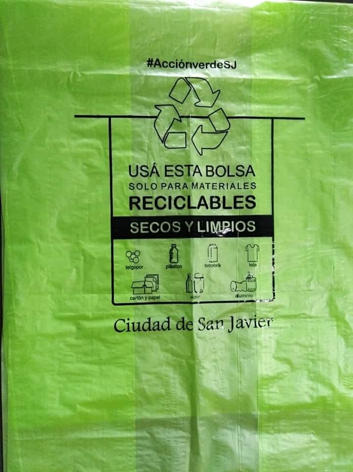 La Municipalidad de San Javier, a través de la Secretaría de Producción, Turismo y Medio Ambiente, y el proyecto denominado «Acción verde San Javier», entrega bolsas con la información de qué productos se deben colocar en los reciclables.