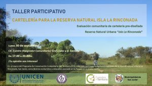 Se realizará el próximo lunes 30 de septiembre en el Centro Integrador Comunitario (CIC) un encuentro participativo sobre la Cartelería para la Reserva Natural “Isla la Rinconada”.