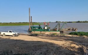 La Unión Transitoria de Empresas (UTE) encargada de la obra de defensa contra inundaciones y estabilización de barrancas en la zona este de San Javier ha comenzado los trabajos de limpieza y movimiento de suelos a orillas del arroyo San Joaquín, en el barrio La Flecha. Al mismo tiempo, el equipo continúa preparando la draga excavadora para avanzar en la ejecución del proyecto.