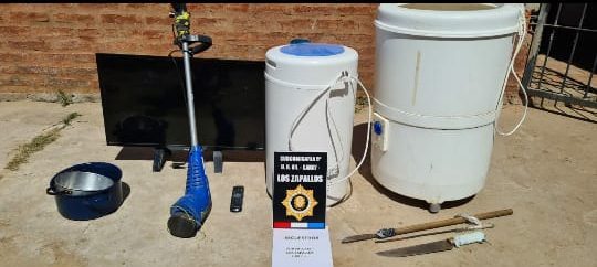 El segundo allanamiento resultó con la aprehensión de dos masculinos (ambos de 23 años de edad), uno de ellos con domicilio en Barrio Las Flores de Santa Fe, y el secuestro de vajillas (2 ollas), (01) secarropas, (01) lavarropas, (01) bordiadora y (01) televisor que guardan relación a otro hecho de robo denunciado en sede policial.