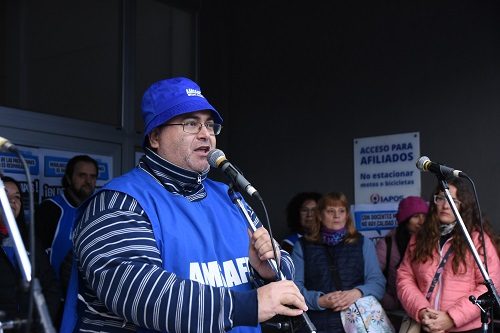 “Igualito a lo que pasaba en la década del 90. El ajuste no es solamente económico y salarial. También hay un ajuste en las prestaciones de nuestra obra social, por eso también hoy estamos acá. Y no es casualidad que haya actividades en muchas de las sedes de IAPOS a lo largo y ancho de la provincia. No vamos a hablar de lo que todos conocemos. De la falta de prestaciones, ni del plus, ni cómo la obra social nos abandona a los miles y miles de afiliados. Pero sí vamos a decir que esta obra social es de las trabajadoras y es de los trabajadores. Y que somos los que no participamos en las definiciones que se toman. Queremos saber a dónde van esos recursos, porque esos recursos, en vez de ir a los grandes grupos médicos, a los grandes grupos farmacéuticos, tienen que ir para garantizar la salud de los afiliados”.