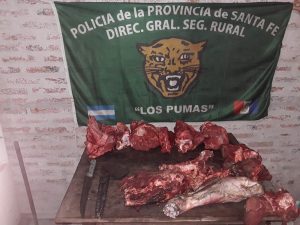 SECCION Nº 21 ROMANG: Se recepcionó llamado telefónico de un Señor, dando cuenta que había sido informado por el empleado rural  que linda con su predio, que divisó una luz artificial presumiblemente de una linterna y que después de unos instantes escuchó la detonación de un arma de fuego; en virtud a ello la prevención se comisionó en el lugar, donde momentos en el cual se dirigían hacia el mismo, observaron un automóvil por otro camino alternativo; por lo que de manera inmediata se solicitó colaboración a personal de la Cría 2da de esa Localidad, para localizar e interceptar al rodado ya que podría tratarse de un hecho delictivo; consecuentemente arribados funcionarios de la Cría. ponen en conocimiento que habían identificado a una camioneta cuyo conductor, un masculino, al descender del vehículo se visualizó que estaba descalzo con los pies con barros y en estado de nerviosismo continuó con su trayectoria; por lo que no sería ajeno al ilícito acaecido; prosiguiendo con diligencias, en Ruta Pcial N° 36 y camino vecinal se llevó a cabo en forma pedestre rastrillajes pudiéndose notar huellas de persona de pies descalzos, encontrándose además entre las malezas las bolsas de nylon conteniendo en el interior sesenta (60) kgs. aprox. de producto cárneo vacuno (dist. cortes), procediéndose al Secuestro Preventivo y traslado a Sede Policial. No obstante, a ello se libró consulta con Magistratura Interviniente, fines disponga las pautas a seguir sobre lo actuado hasta el momento. – Interviene U.F.I.- Reconquista. –