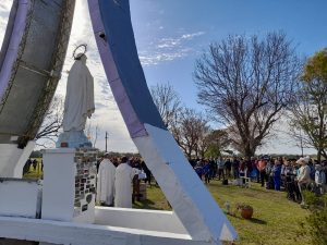 El sacerdote compartió su experiencia personal al realizar la peregrinación a pie junto a los fieles: «Nos animamos y gracias a Dios, con la gracia y la fuerza del Señor, llegamos. Es una experiencia especial, compartimos, rezamos, cada uno trae sus intenciones en el corazón para dejarlas a los pies de la virgen».La peregrinación a la imagen de la Virgen de Lourdes en Colonia Mascías es un evento profundamente arraigado en la comunidad local. El sacerdote Armando Cattaneo explicó la relevancia de la imagen y su significado: «La Virgen de Lourdes es una vocación muy querida, es la patrona de los enfermos. Es una de las notas de la virgen de Lourdes. Cuando leemos la historia de Lourdes en Francia, sabemos que millones de peregrinos la visitan anualmente, sobre todo en casos de enfermedad, la toman como mediadora e intercesora. Pero bueno, es nuestra madre, y esta visita es como el encuentro anual con nuestra madre, un esfuerzo para encontrarnos aquí, a los pies de ella».