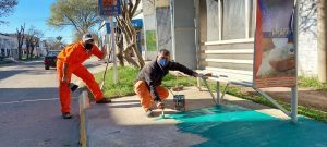 Pintura de garitas y mantenimiento urbano en paradas de colectivos