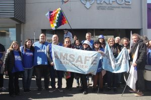 Con la presencia de compañeras y compañeros de todos los departamentos de la provincia, se entregó un petitorio con 18.981 firmas que exige a la obra social garantizar el acceso a prestaciones de calidad y poner fin a los recortes que hoy afectan a la docencia santafesina, tanto activa como jubilada. La actividad fue encabezada por el secretario general de AMSAFE, Rodrigo Alonso, y contó también con la participación y el acompañamiento de diversos sectores de la clase trabajadora y organizaciones sociales, entre ellos: Sadop Santa Fe, representado por Pedro Bayúgar, Silvina Bataglini del Frente Barrial CTA Santa Fe, Javier López con UTRAM-FESTRAM-CTA, Alejandro Gitro de la Multisectorial Marcha de los Banquitos, Pablo Giménez del Sindicato de Prensa y Leandro Goldsack de Siprus, quienes sumaron su voz en defensa del derecho a la salud y en rechazo a las políticas de ajuste.