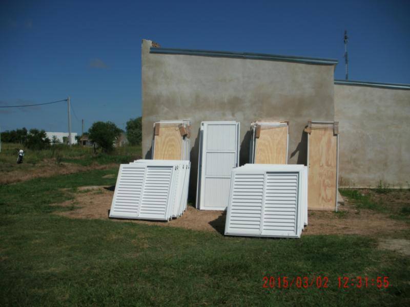 Las externas son de aluminio de primera calidad y las internas de madera con excelente terminación, en consonancia con las casas, en las que se utilizan materiales de gran calidad: paredes de 30 cm de espesor, 2 dormitorios, cocina comedor y baño. Las viviendas ya están techadas y revocadas con el contrapiso terminado.