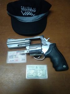 Con la presencia de testigos se verificó el contenido del vehículo, encontrándose un revolver, se procedió al secuestro del arma y la credencial vencida.