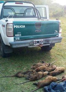En patrullaje preventivo por zona rural de Los Corralitos, personal policial labro Acta por Infracción a la Ley Provincial Nº 4830 (Ley de Caza) a un ciudadano de 24 años de edad; se hallaba a la vera de calle publica teniendo en su poder nutrias evisceradas; se procedió al decomiso y posterior desnaturalización, por: cazar sin licencia y en camino público, especies vedadas y no declaradas plagas, con procedimientos antideportivos. Interviene Ministerio de la Producción – Santa Fe.-