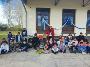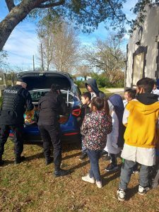 En el día de hoy en horas de la mañana personal de Comisaria Primera, Agrupación Cuerpos y Div. Relaciones Policiales, nos hicimos presentes en la Escuela N° 108 Cabo Primero Ramón Anadón, donde se les realizó un pequeño agasajó a los alumnos de ese establecimiento por el «Mes de Las Infancias», llevándoles Juguetes, ropa, elementos escolares, siendo recibidos con mucha alegría y entusiasmo.