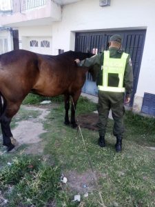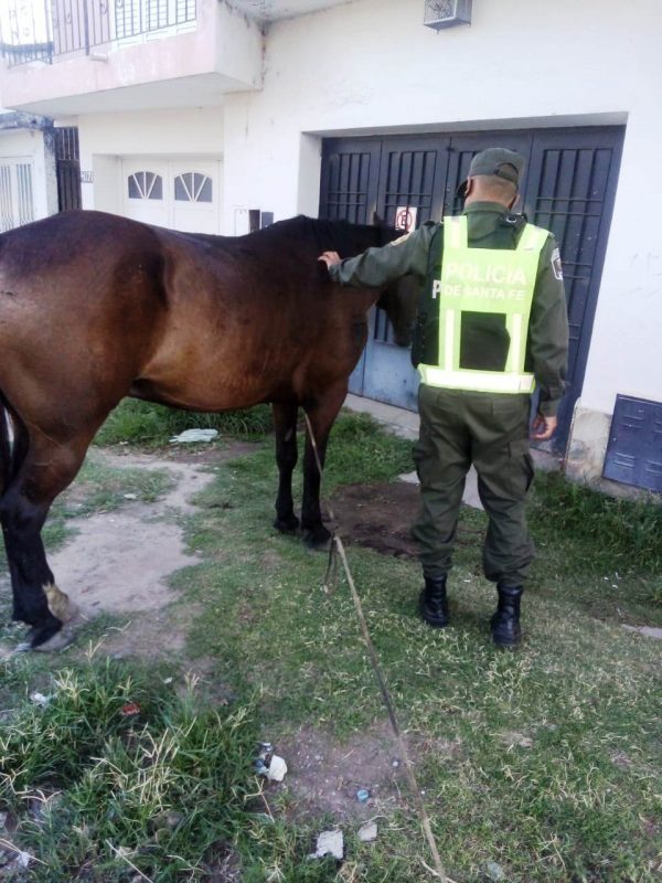 Personal de ese Destacamento, fueron informados por el damnificado, un ciudadano de 53 años de edad, domiciliado en localidad de “La Guardia” Dpto. La Capital, que notó la faltante de dos animales equinos de su propiedad; de patrullaje por la zona, en inmediaciones de Av. Blas Parera de la Ciudad de Santa Fe, observaron un animal equino, el que posteriormente fue reconocido por el damnificado; referido animal lo tenían dos sujetos, que al momento se habrían dado a la fuga, por lo que la prevención realizo rastrillaje por la zona para dar con los autores y con el semoviente faltante. Se prosiguen diligencias a fin de lograr el total esclarecimiento; el equino fue entregado al propietario. Interviene Unidad Fiscal de la Ciudad de Santa Fe.