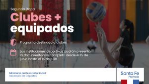 El Ministerio de Desarrollo Social de la provincia, a través de la Secretaría de Deportes, continúa inscribiendo a la segunda etapa del programa Clubes + Equipados, iniciativa que tiene por objetivo asistir económicamente a entidades de primer grado (clubes) de todo el territorio santafesino, para la compra de materiales y/o elementos deportivos.