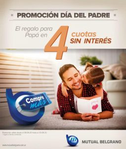 Mutual Belgrano se suma a esta celebración tan especial como lo es el Día del Padre con una Promoción Especial. En esta oportunidad mediante el Sistema Compre Más ofrecerá 4 cuotas sin interés para que elijas el mejor regalo para papá.