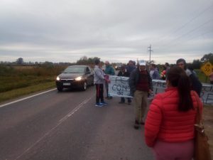 Un grupo de pescadores se manifiesta en la ruta provincial N° 1, jurisdicción de Colonia Mascías, departamento Garay. Los manifestantes cortan media calzada de la ruta costera.