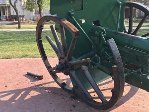 Personal del Corralón Municipal están reparando la rueda del cañón que fue destruida por vándalos.