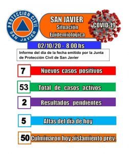 La Junta de Protección Civil de San Javier informó que 7 personas fueron reportadas con coronavirus en las últimas 24 horas en la cabecera departamental.