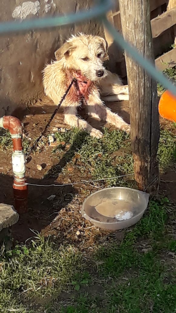 Al llegar los uniformados habrían constatado que el patio de la casa había una perra, atada con un cable y un corte en el cuello.