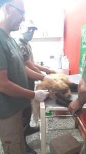 Fue trasladándolo hasta Sede Policial, donde fue examinado por Médico Veterinario, diagnosticando que se trataba de un animal de sexo hembra, de 6 o 7 meses de vida aproximadamente con síntomas de deshidratación, que presuntamente no estaría alimentándose, aconsejando por tal motivo no ser devuelto en lo inmediato a su hábitat natural.