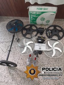 En el día de ayer personal de Comisaria Tercera, tomó conocimiento por parte de un masculino mayor de edad, quien les manifiesto que ingresaron a su domicilio previo violentar una puerta trasera y le sustrajeron tres ventiladores de pie, uno de mesa y zapatillas, aportando datos del posible autor.