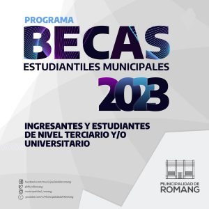 La Municipalidad de Romang comunica que posee abierta la inscripción al Programa de Becas Estudiantiles Municipales 2023, para ingresantes y estudiantes de nivel terciario y/o universitario.