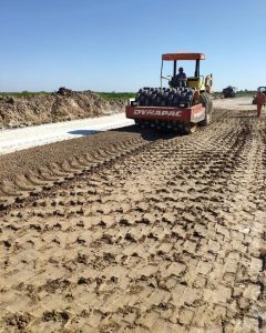 La empresa contratada por Vialidad Provincial continúa trabajando esta tarde con los paquetes estructurales del terreno que permitirá su posterior pavimentación. Los trabajos culminaran a mediados de la próxima semana.
