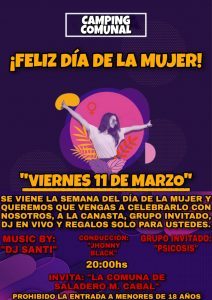 La comuna de Saladero Cabal informó que se realizará una actividad para conmemorar el Día Internacional de la Mujer.