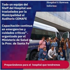 Desde el efector de salud se informó que se trasladó a la Segunda Cohorte del equipo de Salud del Hospital G Rawson quienes comenzaron la capacitación teórica/práctica para la Unidad de Terapia Intensiva preparándonos para brindar cuidados de calidad y excelencia, brindando atención especializada y adecuada con la nueva tecnología con la que cuenta el nuevo Hospital local.