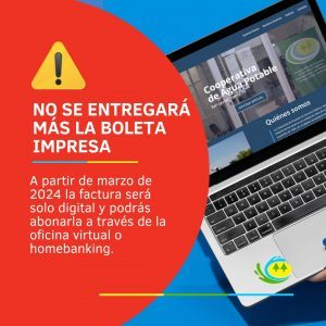 A partir de dicho mes, la cooperativa dejará de repartir la boleta impresa del servicio de agua y sepelio, optando por la digitalización de estos documentos. Para garantizar el acceso oportuno a la información, se insta a los asociados a utilizar la factura digital, la cual estará disponible a través de la oficina virtual en la página web oficial de la cooperativa.