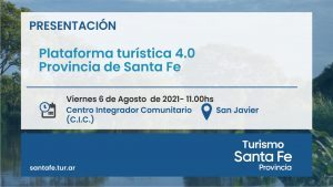 La Secretaría de Turismo de la provincia de Santa Fe y la Secretaría de Producción, Turismo y Medio Ambiente de la Municipalidad de San Javier, invitan a todos los prestadores turísticos y medios de comunicación, a la presentación de la Plataforma Digital Turística Santa Fe, una herramienta para potenciar el rubro.