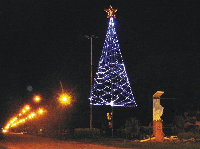 Ya está instalado el árbol navideño en el acceso sur a nuestra ciudad, con motivo de las fiestas de navidad y fin de año. El trabajo fue realizado por Fernando Vázquez de la Secretaría de Cultura Educación y Deporte, junto a Cristian Almudes y Waldo Santillán.