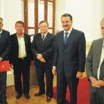 El vicegobernador Jorge Henn y los ministros de Gobierno y Reforma del Estado, Rubén Galassi, y de Seguridad, Raúl Lamberto, entregaron aportes a 13 municipios y comunas del centro norte provincial, correspondiente al Plan de Apoyo e Inversión en Videovigilancia. El Intendente Mario Migno y el presidente de Concejo Deliberante Silvio Florito, recibieron el aporte (foto).