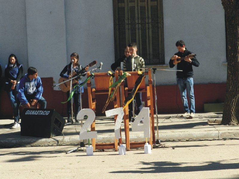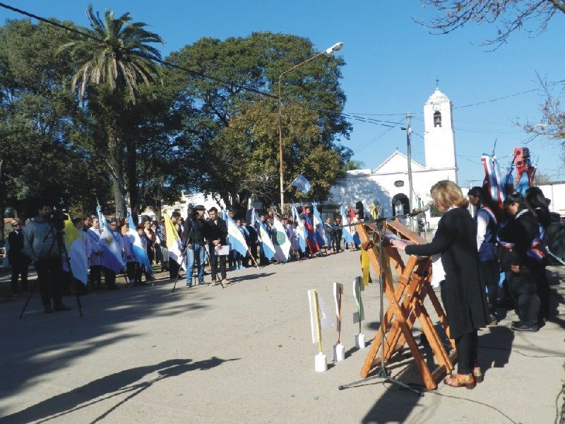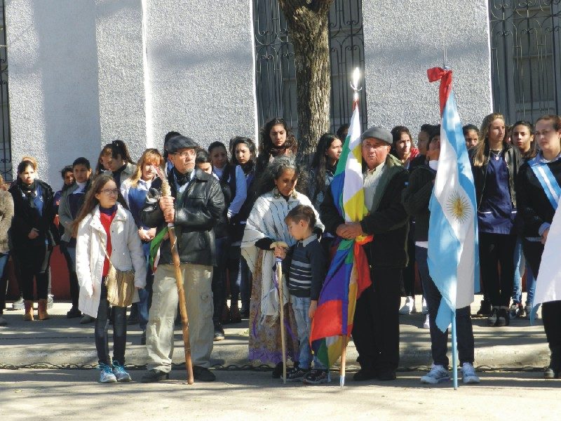 Luego del izamiento de la bandera argentina, se entonaron las estrofas del himno nacional argentino y se colocó una ofrenda floral en el mástil de la plaza San Martín. La invocación religiosa estuvo a cargo del presbítero Sergio Capoccetti. También dejaron su mensaje los representantes de los Pueblos Originarios Néstor y Ángela Lanche y de la directora del Instituto de Formación Superior, Alicia Pighin.