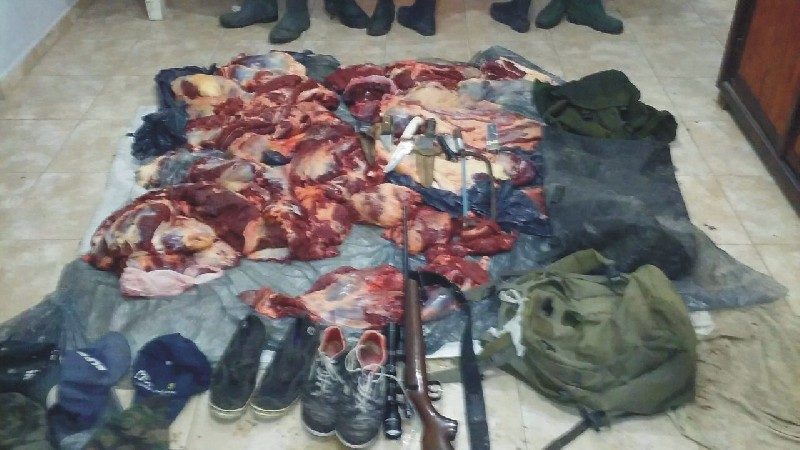 Personal de la Guardia Rural “Los Pumas” Sección 14 San Javier procedió al decomiso de carne vacuna, secuestró un arma de fuego y aprehendió a siete hombres mayores de edad por abigeato.