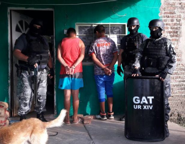 En el día de la fecha personal policial de la Comisaría Tercera (Santa Rosa de Calchines) UR VII, junto a personal de Patrulla Urbana UR VII, efectivos de la Sub. Comisaría Quinta (Los Zapallos) UR VII, miembros de la Brigada Operativa Departamental VII-Garay, dependiente de la Dirección General de Prevención y Control de Adicciones, efectivos de la Policía de Acción Táctica de las UR I (Dpto.. La Capital) y de la UR XIV (Dpto San Javier) con colaboración de efectivos de Gendarmería Nacional procedieron a efectuar diversos allanamientos en domicilios de la localidad de Santa Rosa de Calchines y de la ciudad de San José del Rincón, logrando secuestrar gran cantidad de elementos (artículos de caza y pesca, armas de fuego, herramientas varias, electrodomésticos, utensilios de cocina, garrafas, muebles de cocina, muebles de dormitorio, entre otros). Vale mencionar que los efectivos policiales lograron además la aprehensión de dos jóvenes de 22 años de edad, domiciliados en barrio don Fausto de la localidad de Santa Rosa de Calchines, como así también la aprehensión de un ciudadano de 46 años de edad domiciliado en la localidad de San José del Rincón y temporalmente en barrio Don Fausto de Santa Rosa de Calchines, como así también dos menores de 15 y 17 años de edad respectivamente domiciliados en barrio Don Fausto de Santa Rosa de Calchines fueron trasladados a sede policial por resultar todos involucrados en el hecho de mención.