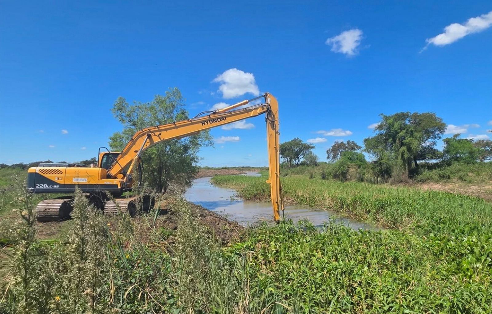 Para tal fin, la Comuna de Santa Rosa de Calchines alquiló una Excavadora Especial de brazo largo para intervenir distintos tramos de los casi 7 kilómetros que atraviesa el arroyo.