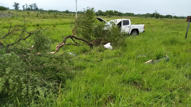 El comisario Hugo Fabián Palacios, jefe de la Unidad Regional XIV, protagonizó esta mañana un impactante vuelco en un vehículo oficial mientras viajaba por la ruta provincial N° 1, en medio de un temporal de lluvia y viento. El director de policía había salido de su casa de la localidad de Alejandra, en el norte del departamento San Javier y se dirigía a la jefatura, cuando perdió el control de la camioneta Volkswagen Amarok y terminó impactando contra dos aromos de la banquina.