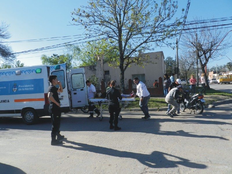 El accidente sucedió esta tarde a las 16.30 hs. aproximadamente, en barrio Santa Teresita, en la esquina de las calles Núñez Burges y 25 de mayo, cuando la mujer que circulaba en moto se le cruzaron dos perros, perdió el control y cayó al asfalto.