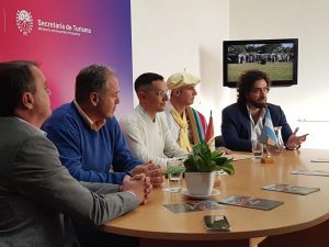 Participaron de la conferencia de prensa el director Provincial de Turismo, el presidente comunal de Cayastá, el senador por el departamento Garay, el secretario de Gestión Cultural, y el presidente de la Asociación Conmemorativa de la 1° Yerra