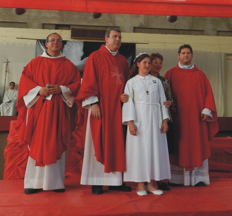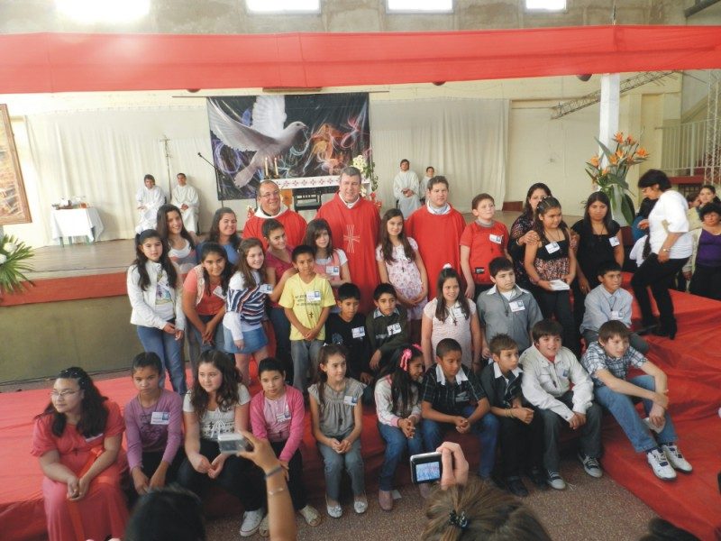Ayer a la tarde el Vicario General de Arquidiócesis de Santa Fe Javier González, realizó las confirmaciones a los niños, jóvenes y adultos, en una misa realizada en el gimnasio cubierto del Colegio San José.