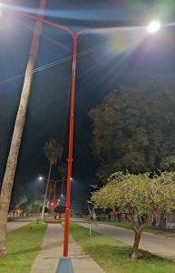 La Municipalidad de San Javier sigue avanzando en la colocación de luminaria LED y en este caso, se continúan colocando las farolas en el acceso por avenida Teófilo Madrejón.