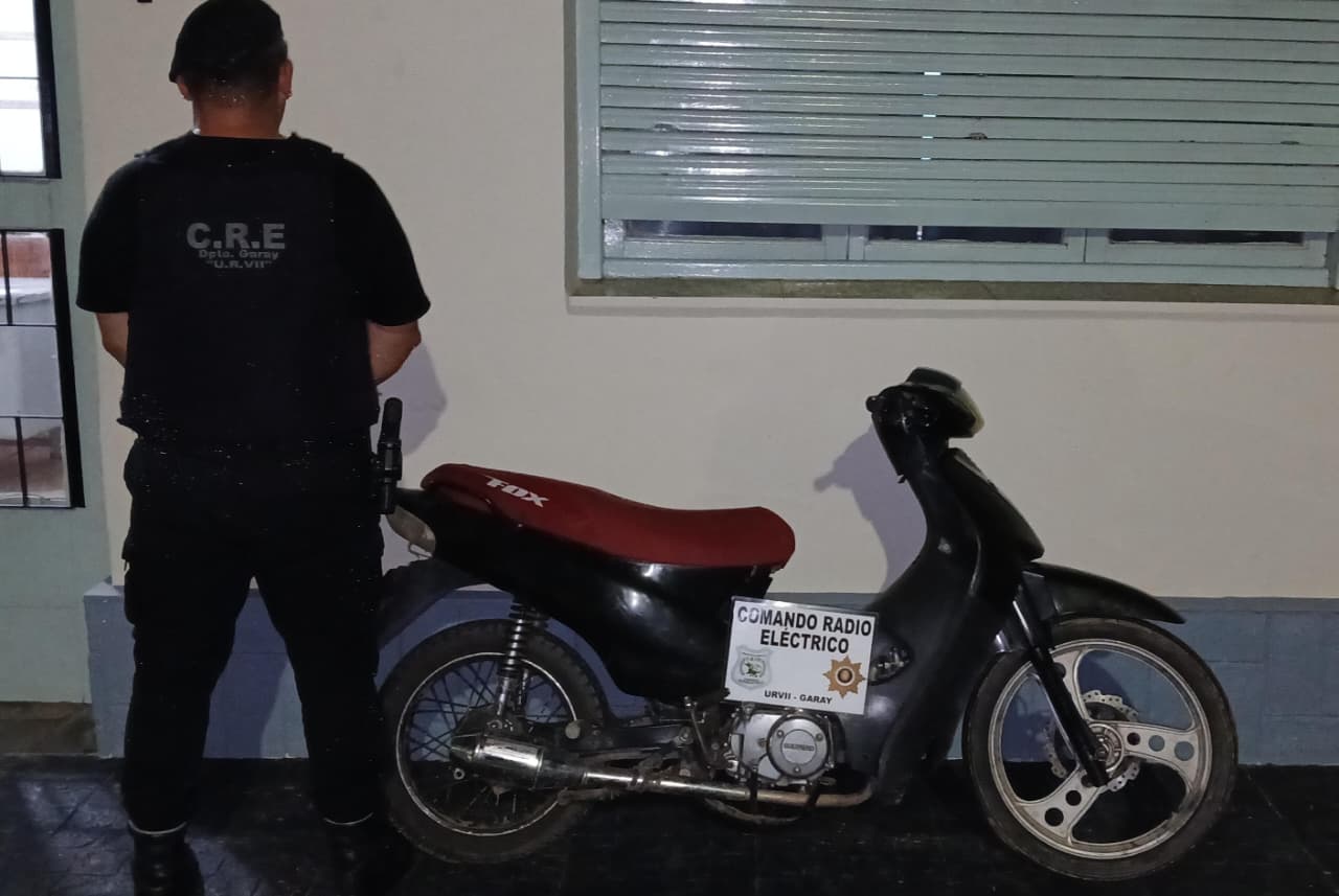 Personal del Unidad Regional VII secuestró un motovehículo con pedido activo por robo calificado y aprehendió a un hombre que se encontraba en su poder durante un operativo de control realizado en la localidad de Cayastá.