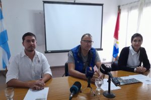Robert Fernández, presidente de la Sociedad Rural, acompañado por los profesionales Ayelén Muchiutti y Santiago Pighin llevaron a cabo una conferencia de prensa en el salón de usos múltiples del AER Inta San Javier, para brindar detalles del taller del próximo sábado.