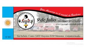 El día 9 de Julio, se llevará a cabo un almuerzo criollo en el Cuartel de Bomberos, en el marco de los festejos del 35° año de su creación.