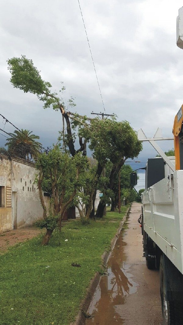 Por su parte personal de la Municipalidad realizó tareas de limpieza en los lugares donde había caído árboles y ramas.