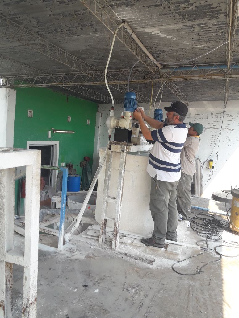 Mientras que en la planta potabilizadora se están cambiando las bombas inyectoras, tachos para el preparado de productos químicos, entre otros, para mejorar el sistema de impulsión y de distribución en la ciudad, para la temporada estival.