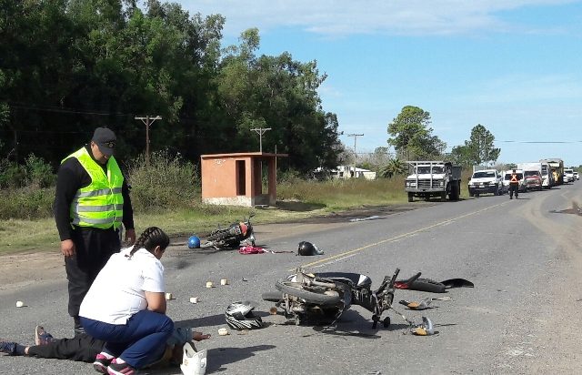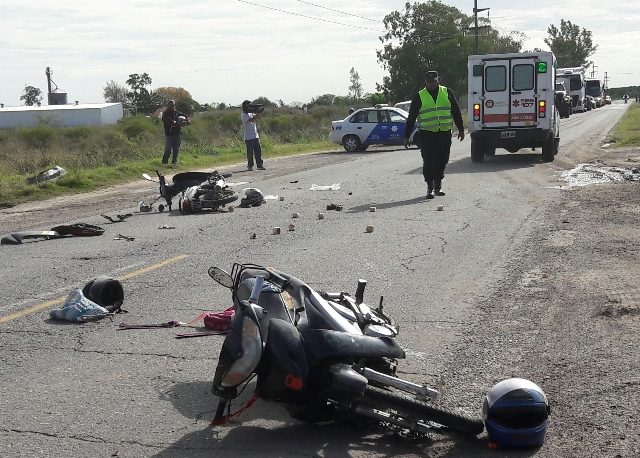 Por causas que se tratan de establecer una motocicleta, dominio 815-GEL la que era conducida por un hombre de 69 años de edad, entró en colisión con otra motocicleta dominio 061-CHJ, en la que se trasladaban, un joven de 18 años y una menor de 14. Todos llevaban casco.