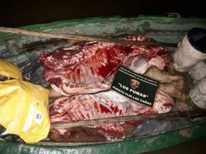 Se logró el secuestro de la carne, una escopeta y tres cuchillas. La causa está a cargo de la justicia provincial.
