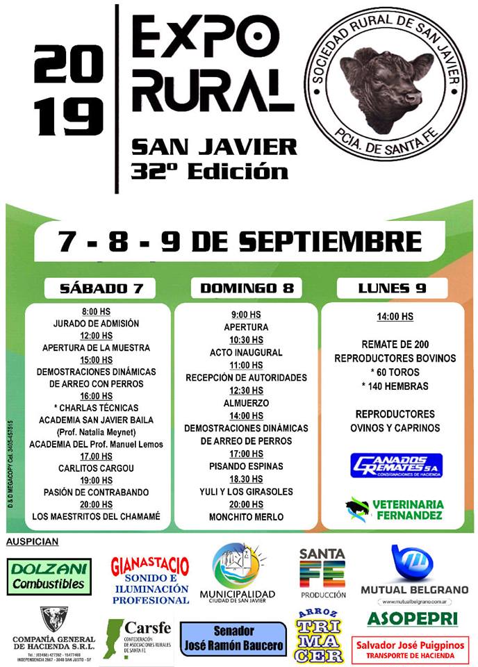 Se realizará del 7 al 9 de septiembre. Es organizada por la Sociedad Rural de San Javier. Confirmaron su presencia numerosos expositores.