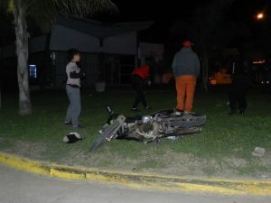 Producto del impacto el conductor de la moto resultó lesionado y fue trasladado en ambulancia al hospital Rawson.