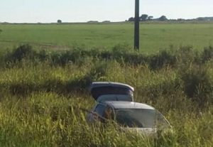 Por causas que se desconocen un automóvil en el que viajaban un hombre de 45 años, su esposa e hija, despisto y volcó.